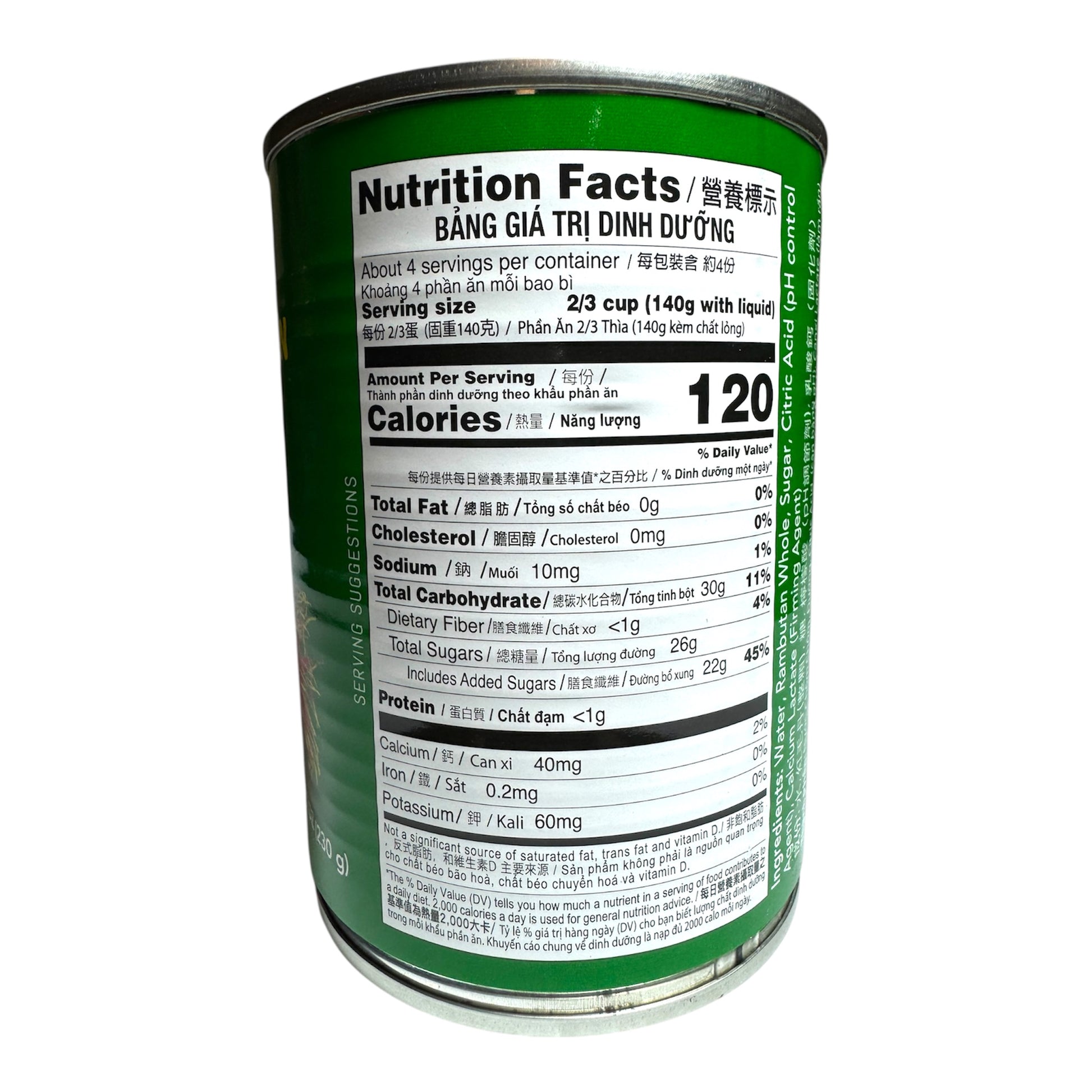 • Ingredients: Rambutan, Water, Sugar, Citric Acid (pH Control Agent).