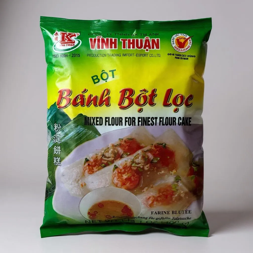 Vĩnh Thuận Mixed Flour for Finest Flour Cake, or Bột Bánh Bột Lọc, provides the perfect foundation for creating the beloved Vietnamese "Bánh Bột Lọc" – a traditional tapioca dumpling often filled with shrimp and pork. This specially blended flour ensures the characteristic chewy and translucent texture of authentic Bánh Bột Lọc, allowing you to easily prepare this savory and delightful dish at home.