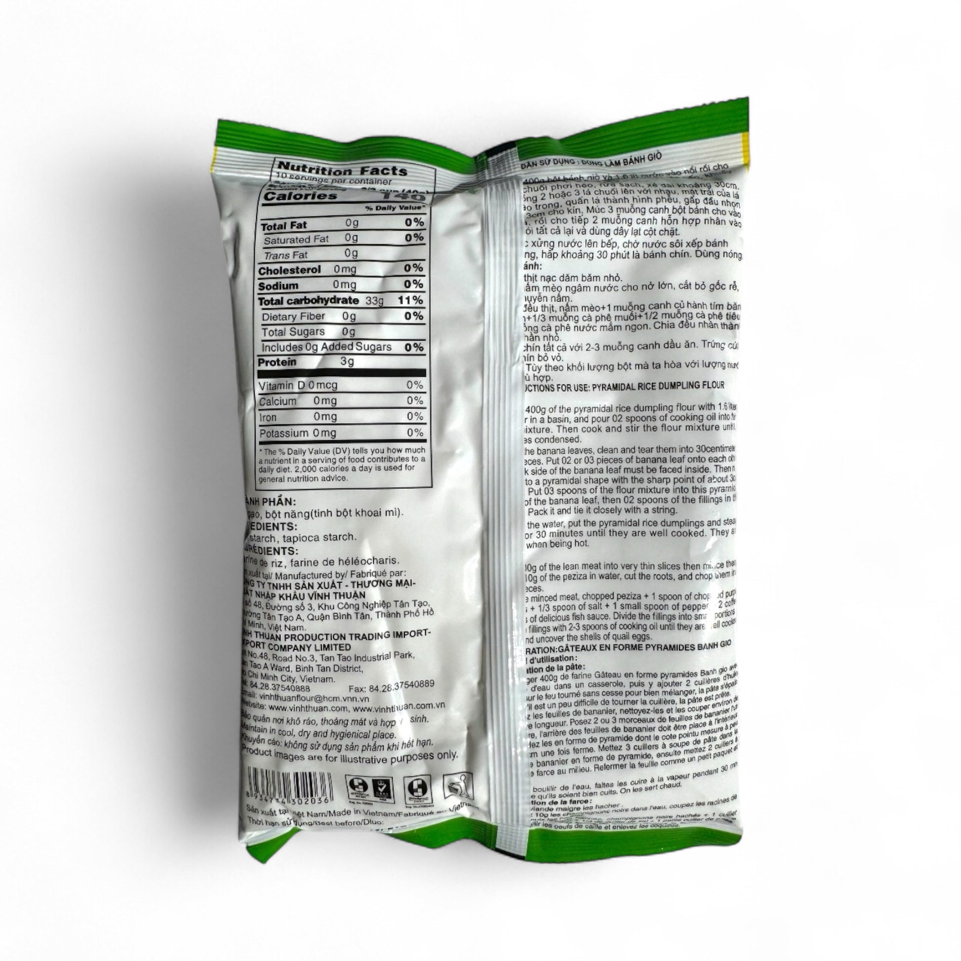 This high-quality flour mix from Vinh Thuan is specially formulated for making traditional Vietnamese Pyramidal Rice Dumplings (Bánh Giò). With a perfect blend of rice flour and tapioca starch, it helps you create the signature soft, smooth, and delicious texture of this classic dish at home.